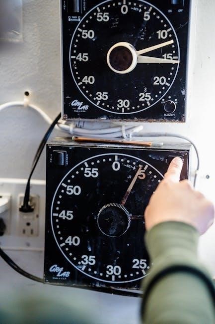 Daylight Saving Time (DST) options are also configurable. Enable or disable DST based on your location’s observance. The manual will explain automatic DST updates if your model supports radio-controlled synchronization. Incorrect time zone or DST settings will affect accuracy, so consult the manual for precise instructions and ensure proper configuration.